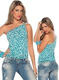 Our One Shoulder Top in beautiful blue features a flowing bodice and flattering gathered bottom.